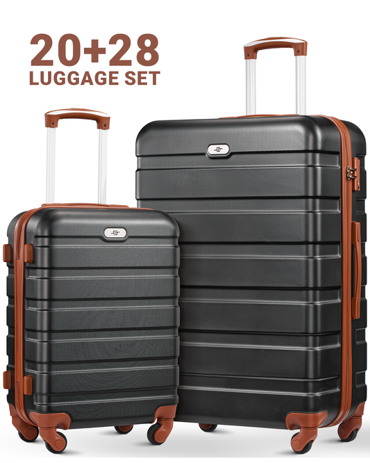 2 Piece Luggage Sets, ABS Hardside Spinner Suitcase with Wheels and TSA Lock, 20 Carry-on and 28 Checked Luggage