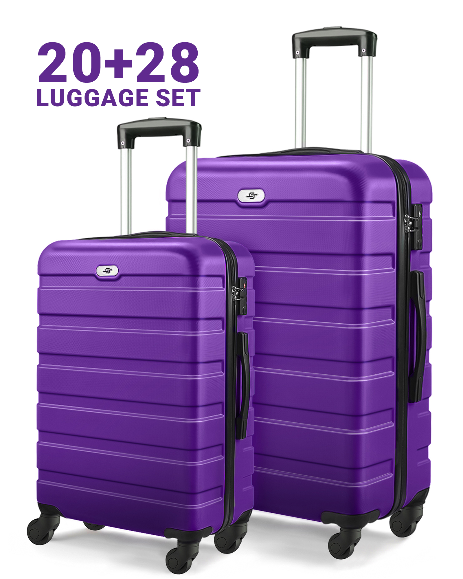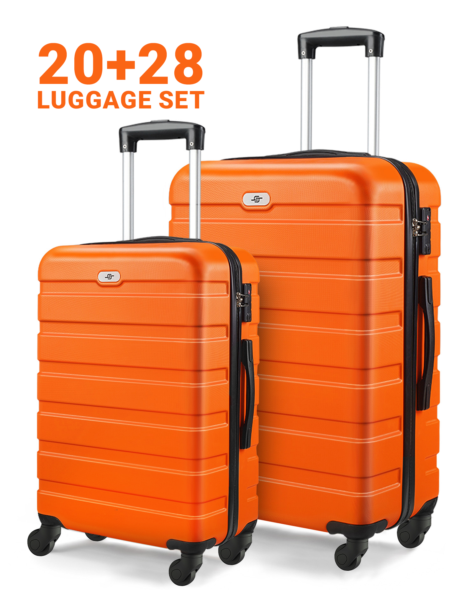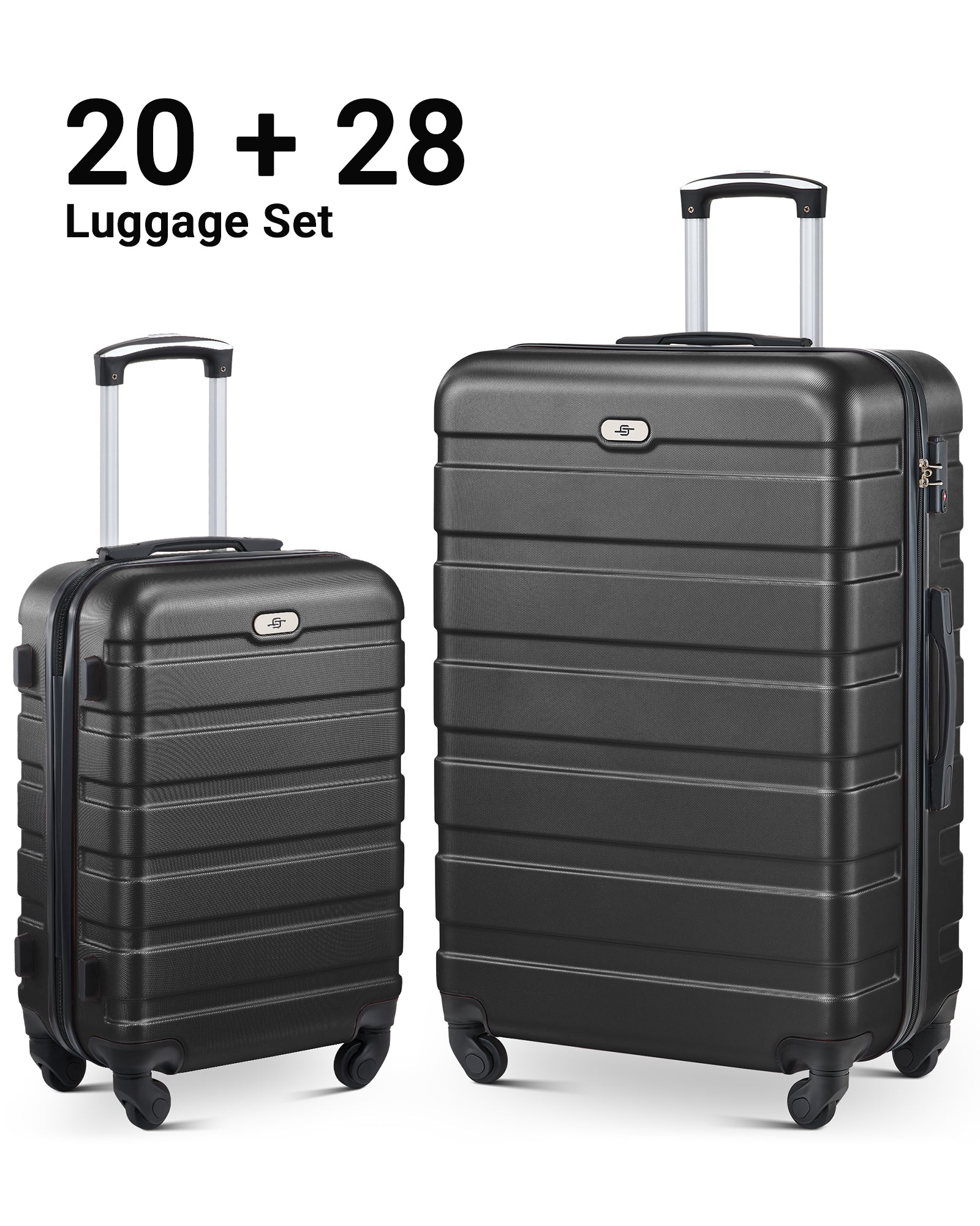 2 Piece Luggage Sets, ABS Hardside Spinner Suitcase with Wheels and TSA Lock, 20 Carry-on and 28 Checked Luggage