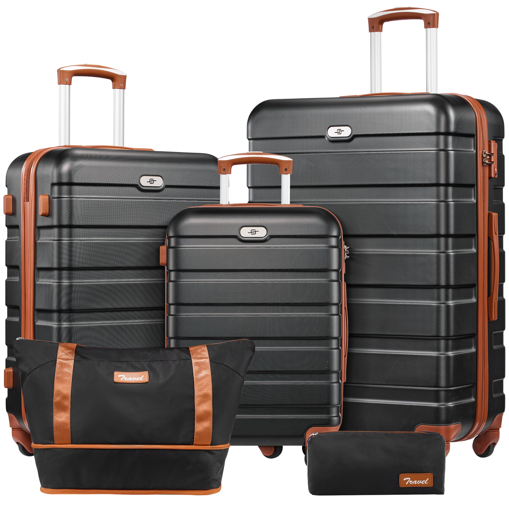 5 pcs travel luggage sets, 20 24 28 inch carry-on and checked luggage, and expandable duffle bags