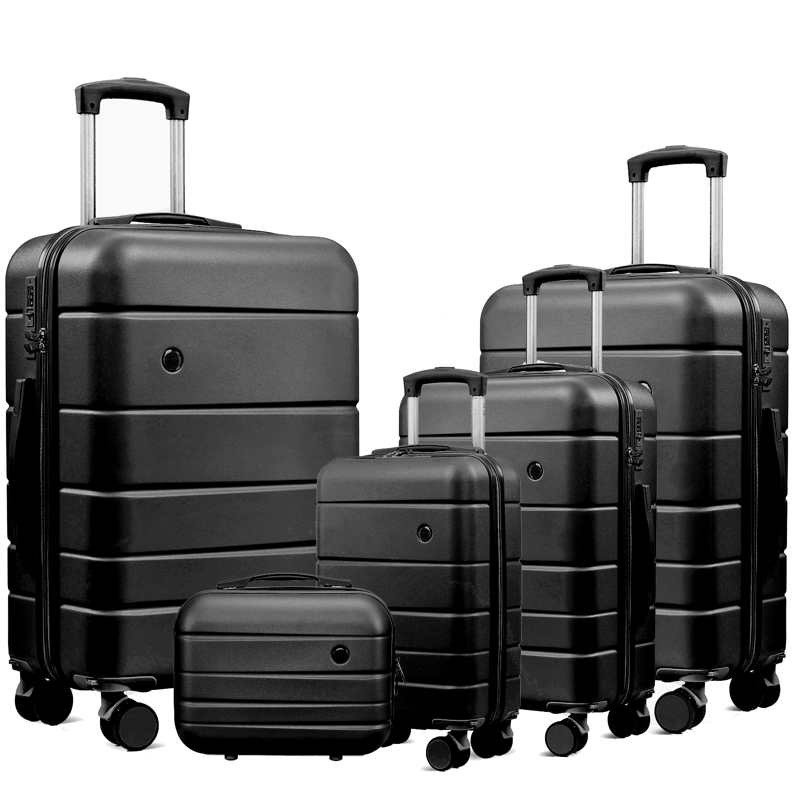 - 5-Piece Set: Includes 22" & 24" checked luggage, 18" & 20" carry-ons for flight, and a 14" mini cosmetic case that attaches to telescopic handles. Whether you're traveling with family, or on a business trip, this collection has you covered.